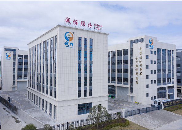 诚佰股份(股票代码:873335)国家高新企业,2021年喜迁至龙港市新城工业区东塘路1555号 ,新厂房20000平方,无纺布生产线2条,凹版6+1印刷机6台,1.60米宽覆膜机2台,超声波全自动立体袋成型机10台,制袋包装车间。原料-面料-印刷-制袋深加全产业链一体化,自主研发水性油墨印刷帆布无味环保,30台数码印花机。