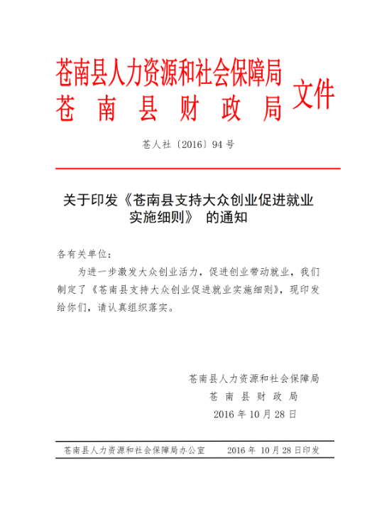 为激发全民创业活力,促进创业带动就业,现制定苍南县支持大众创业促进就业实施细则。