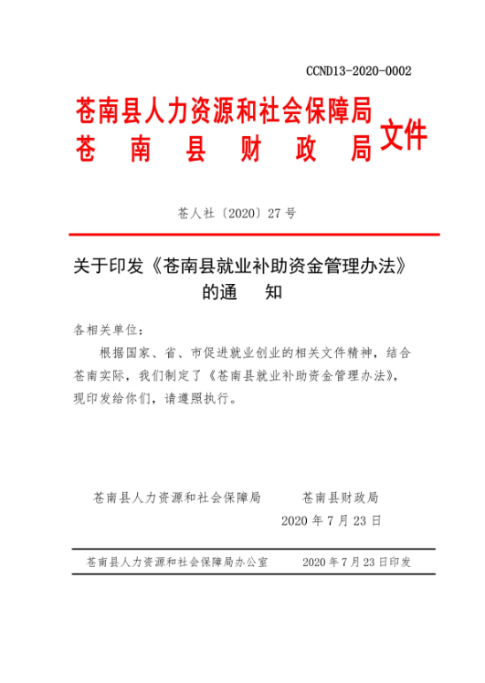 苍南县就业补助资金管理办法