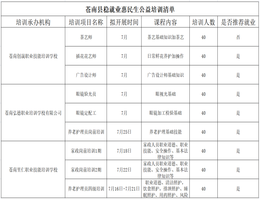 为做好常态化疫情防控下职业技能培训工作,联动推进省民生实事“浙派工匠”建设,促进我县重点群体提升技能、稳定就业、增加收入,夯实共富基础,县人社局联合县域内多家职业技能培训学校开展“公益培训领航红七月”系列活动,免费为高校毕业生、就业困难人员、退役军人、农村转移劳动力、妇女等群体,提供多工种、多形式的技能培训,部分项目培训后推荐就业!名额有限,额满开班!