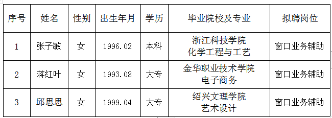 根据《苍南县市场监督管理局 苍南县劳动保障事务所 招聘劳务派遣制员工公告》(2022年9月30日发布)规定的程序,经公开报名、资格审查、面试,确定下列拟聘用人员,现公示如下: