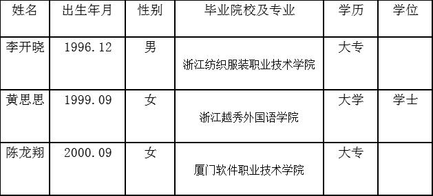 按照《凤阳畲族乡人民政府公开招聘编外工作人员的公告》,经过报名、资格审查、面试、体检、考察等程序,现将我乡2022年编外用工招聘拟聘用人员名单予以公示。公示时间:2022年11月2日—2022年11月6日。监督电话:0577-59871507。