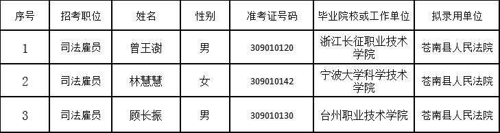 苍南县人民法院考试录用司法雇员公示表