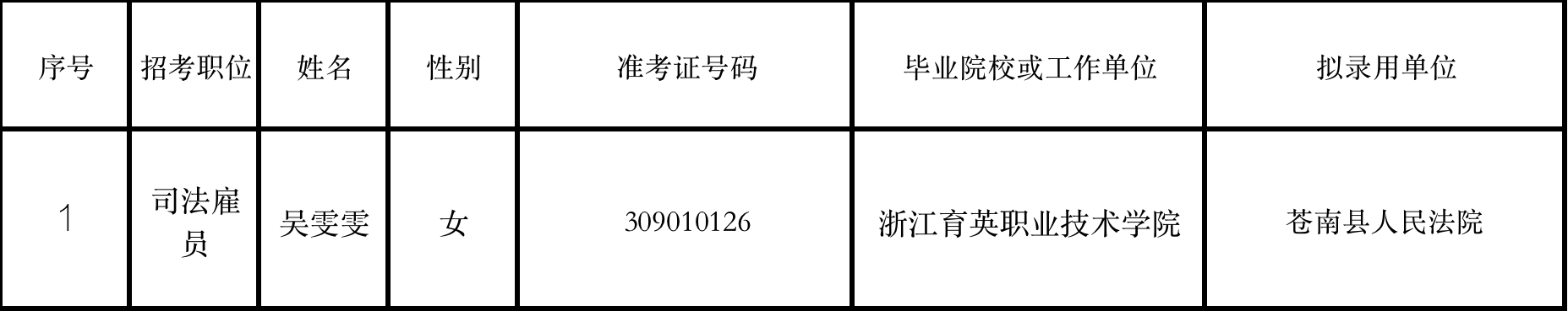 苍南县人民法院考试录用司法雇员公示表